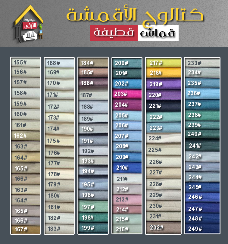 في حال اختيار نوع من الأقمشة، اختر اللون المناسب لك من الكتالوج، واكتب الرمز الموضح في اللون إلى صفحة شراء المنتج